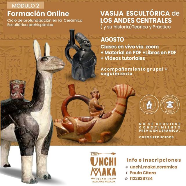 Además del material cerámico basamos a estudiar algunas tallas en piedra, la hermosa orfebrería de estos pueblos así como sus textiles para dar mayor riqueza a nuestras representaciones antropomorfas. Recrearemos una Botella escultórica de asa Estribo con gollete propia de la cultura Mochica.