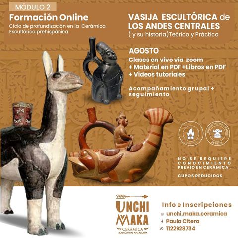 Vamos a darle forma a nuestra botella a través de técnicas manuales muy hermosas para recrear un botellón fitomorfo (con forma de verduras y frutas) y sobre él trabajar una escultura antropomorfa y sumar un asa estribo típico de estas vasijas.